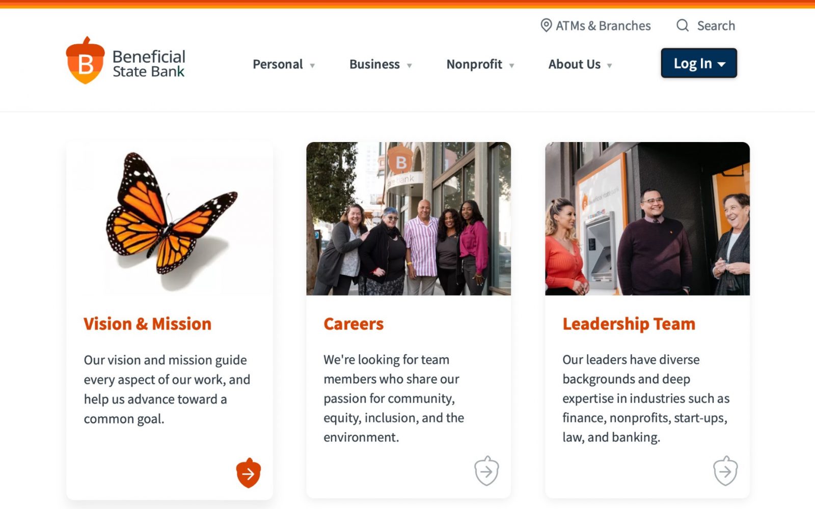 Good Dog Design provides comprehensive UI/UX and development solutions for Beneficial State Bank. We work closely with their team to manage new features, deliver reporting, and consult on their ongoing digital projects. With Good Dog Design's comprehensive approach, Beneficial State Bank can deliver exceptional online banking services while staying ahead of the curve in the ever-evolving digital landscape.