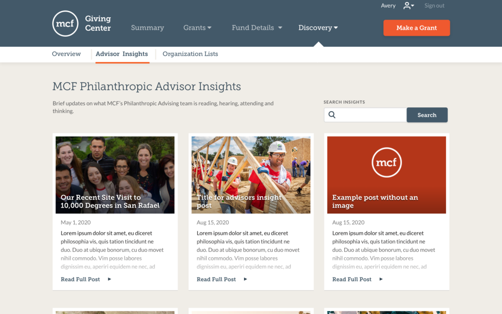 MCF is a Bay Area leader in promoting and managing philanthropic contributions. MCF provides professional, thoughtful, and timely services to all donors. However, their dated Giving Center experience wasn't providing donors with a high-quality user experience.